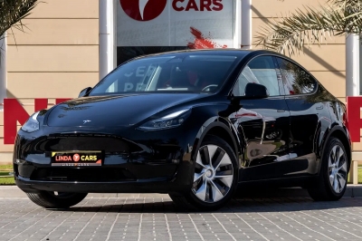 The تسلا موديل واي لونغ رينج سيارات كهربائية مُدرجة من قبل ليندا موتورز ذ.م.م. - 4 أبواب سيارات كهربائية تتسع لـ 5 ركاب و 2 حقيبة (حقائب) متوسطة الحجم.