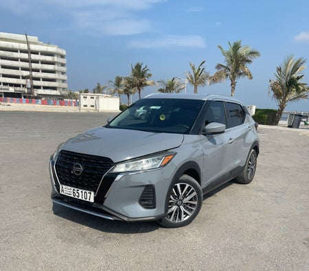 Nissan Kicks 2024 Hire in Ajman: Crisp White Crossover, 5 Seats, Compact, Easy Handling