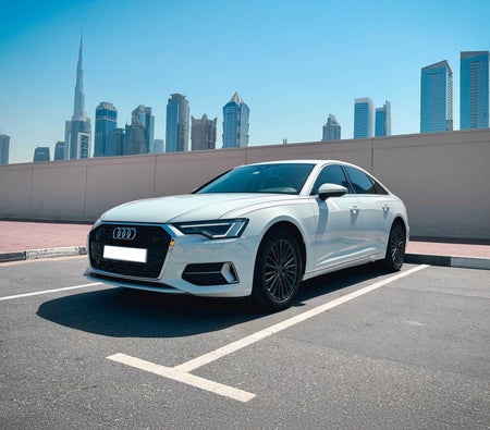 Audi A6 2023 Sharjah Rental: Upscale Car, 5 Seats, White, Elegant, Sophisticated, Comfortable, Cutting-Edge