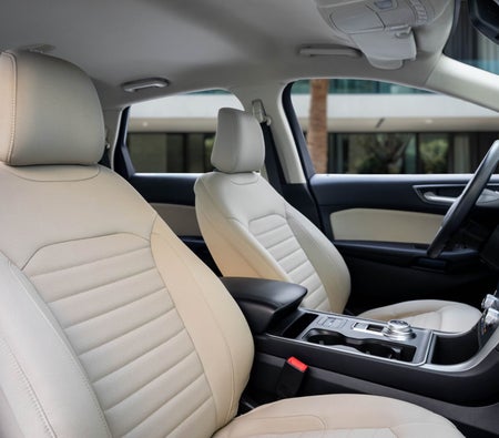 Ford Edge ist ein erstaunlich fähiger Crossover. Sein standardmäßiger 3,5-Liter-Ti-VCT-V6-Motor leistet 285 PS und verbraucht nur 8,7 Liter/100 km auf der Landstraße, sodass Sie jede Fahrt optimal nutzen können. Der Ford Edge bietet Ihnen die revolutionäre, brandneue, verfügbare MyFord Touch Driver Connect-Technologie – angetrieben von der neuesten Version unseres preisgekrönten Ford SYNC®-Systems, mit dem Sie Anrufe tätigen und entgegennehmen und Musik auswählen können, alles mit Sprachbefehlen. Platz ist eine gute Sache. Vor allem auf der Autobahn. Der adaptive Tempomat und die Kollisionswarnung mit Bremsunterstützung verwenden Radarsensoren, um Ihnen dabei zu helfen, einen von 4 voreingestellten Abstand zwischen Ihrem Edge und dem Fahrzeug vor Ihnen einzuhalten. Es verwendet auch dieselben Frontsensoren, um Sie vor einer möglichen Kollision zu warnen. Wenn eines erkannt wird, blinkt eine Warnung über Ihre Windschutzscheibe und ein Alarm ertönt, sodass Sie mehr Zeit haben, die Bremsen zu betätigen. Mieten Sie Ford Edge Dubai bei allen führenden Autovermietungen hier.