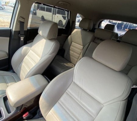 Der Kia Sorento erhielt für das Modell 2013 ein kleines Facelifting. Der Sorento ist ein straßentauglicher Crossover-SUV mit fünf oder optional sieben Sitzplätzen und einer Einzelradaufhängung an vier Rädern. Der verfügbare Motor für den GCC ist ein 3,5-Liter-V6 mit 6-Gang-Automatik und Allradantrieb sowie ein später hinzugekommener 2,4-Liter-4-Zylinder mit 6-Gang-Automatik und wahlweise Vorderradantrieb. Antrieb oder Allradantrieb. Der Innenraum ist in vier Farben, mit Stoff- oder Lederbezug erhältlich. Der neue Sorento CUV kann mit einem Audiosystem mit 6 oder 8 Lautsprechern mit MP3-, USB- und iPod-Konnektivität sowie einem eingebauten oder externen Verstärker ausgestattet werden. Je nach Modell gehören zu den verfügbaren technischen Funktionen bei höheren Modellen ein freihändiger schlüsselloser Zugang und ein Motorstartknopf, eine Rückfahrkamera im Spiegel, eine Navigation, eine automatische Klimaanlage, Xenon-Scheinwerfer, LED-Anzeigen an den Spiegeln, Sitzkühler und -wärmer vorne , umklappbarer Sitz in der 3. Reihe und ein Panorama-Glasdach. Niedrigere Modelle erhalten 17-Zoll-Leichtmetallräder, während höhere Verkleidungen 18-Zoll- oder 19-Zoll-Räder erhalten, und alle erhalten Standard-Vierrad-Scheibenbremsen. Der Sorento ist auch mit Funktionen wie serienmäßigem ABS mit elektronischer Bremskraftverteilung und optionaler Stabilitätskontrolle erhältlich, während die passive Sicherheit auf eine versteifte Struktur und zwei Frontairbags beschränkt ist, mit Seiten- und Kopfairbags nur beim Topmodell. Mieten Sie einen Kia Sorento und streifen Sie durch ganz Dubai.