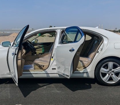 das Lexus LS 460L Limousine wird aufgeführt von Al Qariah Al Khadhra Used Cars TR LLC. Dies 4 Tür Limousine passt 5 Passagiere und 2 mittelgroße Tasche(n).