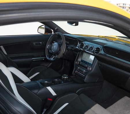 Hire in Dubai: Yellow Muscle Car, 4 Seater, Supercharged Power, Iconic Design, Track Capable, Launch Control