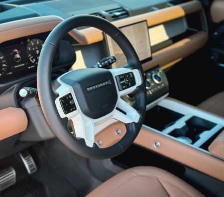 Rent and Drive this Land Rover Defender 2025-model in Dubai, UAE  for USD 231/day & USD 4760/month. Rental cost includes basic comprehensive insurance and standard mileage limit of 250 km/day (USD 2.72 per additional km applicable). Security deposit of USD 544 is required. Contact Dream Drives Rent a Car directly for bookings and inquiries...