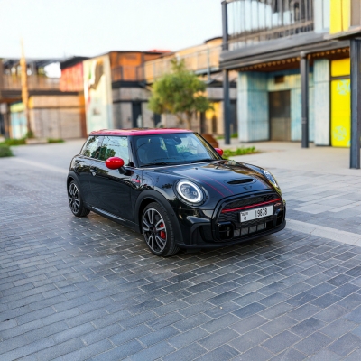 Rent and Drive this Mini Cooper JCW 2024-model in Dubai, UAE  for USD 62/day & USD 1768/month. Rental cost includes basic comprehensive insurance and standard mileage limit of 250 km/day (USD 1.36 per additional km applicable). Security deposit of USD 272 is required. Contact Majestic Rent a Car directly for bookings and inquiries...