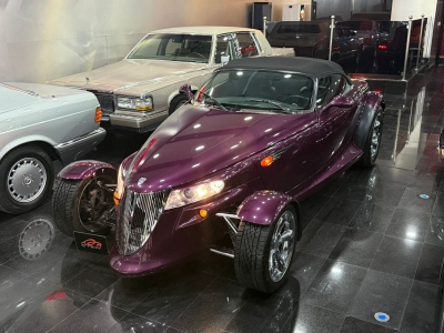 Plymouth Prowler is a rare retro-styled American roadster inspired by 1930s hot rods and produced near the end of the Plymouth brand, making it highly collectible. This example features a custom purple exterior with a Hot Wheels–inspired design created by the first owner, giving it strong show-car character, paired with a black leather interior that keeps a clean, premium look. Built with a lightweight aluminum structure and open front wheels, the Prowler is all about design and presence rather than raw speed, powered by a 3.5-liter V6 engine producing around 253 hp and 255 lb-ft of torque, paired with a 4-speed automatic transmission and rear-wheel drive.