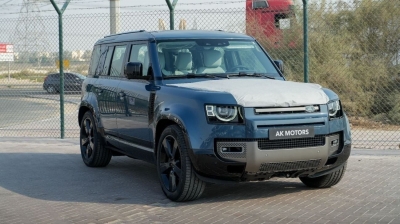 The 2025 Defender 110 XDynamic HSE P400 Marine Blue sale in Dubai. Available from AKMOTORS. Rugged yet refined, the Defender 110 XDynamic HSE P400 blends offroad toughness with luxury. Powered by a 3.0L inline6 mild hybrid engine, it delivers 395 hp with smooth performance, advanced tech, and iconic Land Rover capability