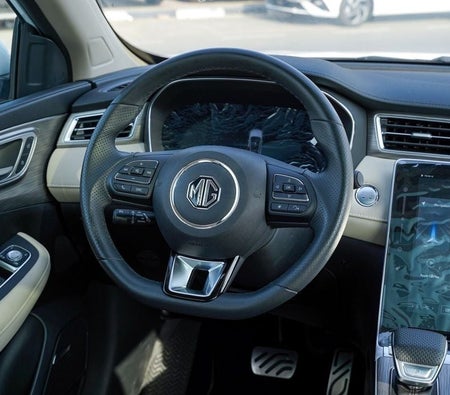 New MG RX for sale from New Auto in Dubai. White model. The car has automatic gearbox, cylinder engine, ″ wheels and beige interior. GCC specs.