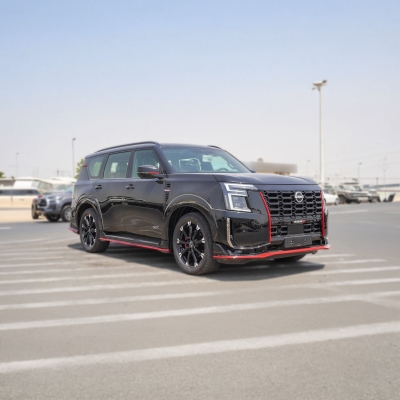 New Nissan Patrol Nismo for sale in Dubai. Available from Najem Motors. Automatic transmission, cylinder engine, ″ wheels and red interior. Never driven, GCC specs.