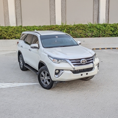 The Toyota Fortuner is one of the most popular, well-priced, and most durable SUVs you can find in the UAE today. The car comes with the same frame as the notorious, indestructible, Toyota Hilux pickup, but put into the body of a far sleeker, and more modern SUV. This frame gives the car one of the strongest, most reliable builds, making it very popular in the UAE. Not only is this car as tough as can be, it’s also very comfortable to drive and sit in. With seating for 7, it’s a family favourite. With great safety, ride height, looks, and modern features and higher trims giving you upper-end features like leather and stitched seating, and high-end infotainment. The Toyota Fortuner has been popular for decades around the world, for its unbeatable reliability and strength, as well as its unbeatable value. The car’s global appreciation speaks for itself, and it’s definitely going to be with you for years to come.