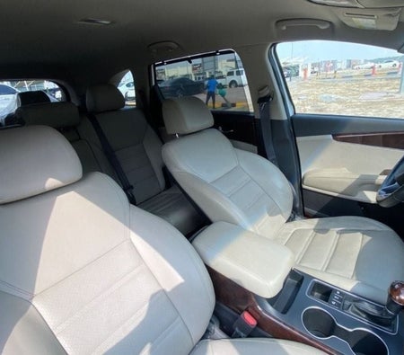 The Kia Sorento received a minor facelift for the 2013 model. The Sorento is a road-going crossover SUV with seating for five or optionally seven, four-wheel independent suspension. The available engine for the GCC is a 3.5-litre V6 with a 6-speed automatic and all-wheel-drive, and a 2.4-litre 4-cylinder joined later, with a 6-speed automatic and a choice of front-wheel-drive or all-wheel-drive. The interior is available in four colours, with cloth or leather upholstery. The new Sorento CUV can be equipped with a 6-speaker or 8-speaker audio system with MP3, USB and iPod connectivity, plus a built-in or external amplifier. Depending on model, available tech features on higher models include hands-free keyless entry and engine start button, in-mirror reversing camera, navigation, automatic a/c, xenon headlamps, LED indicators on the mirrors, seat cooler and warmer in the front, fold-flat 3rd-row seat and a panoramic glass sunroof. Lower models get 17-inch alloy wheels while higher trims get 18-inch or 19-inch ones, and all get standard four-wheel disc brakes. The Sorento is also available with features such as standard ABS with electronic brake-force distribution, and optional stability control, while passive safety is limited to a stiffened structure and two front airbags, with side and curtain airbags only on the top model. Rent Kia Sorento and roam all over Dubai.
