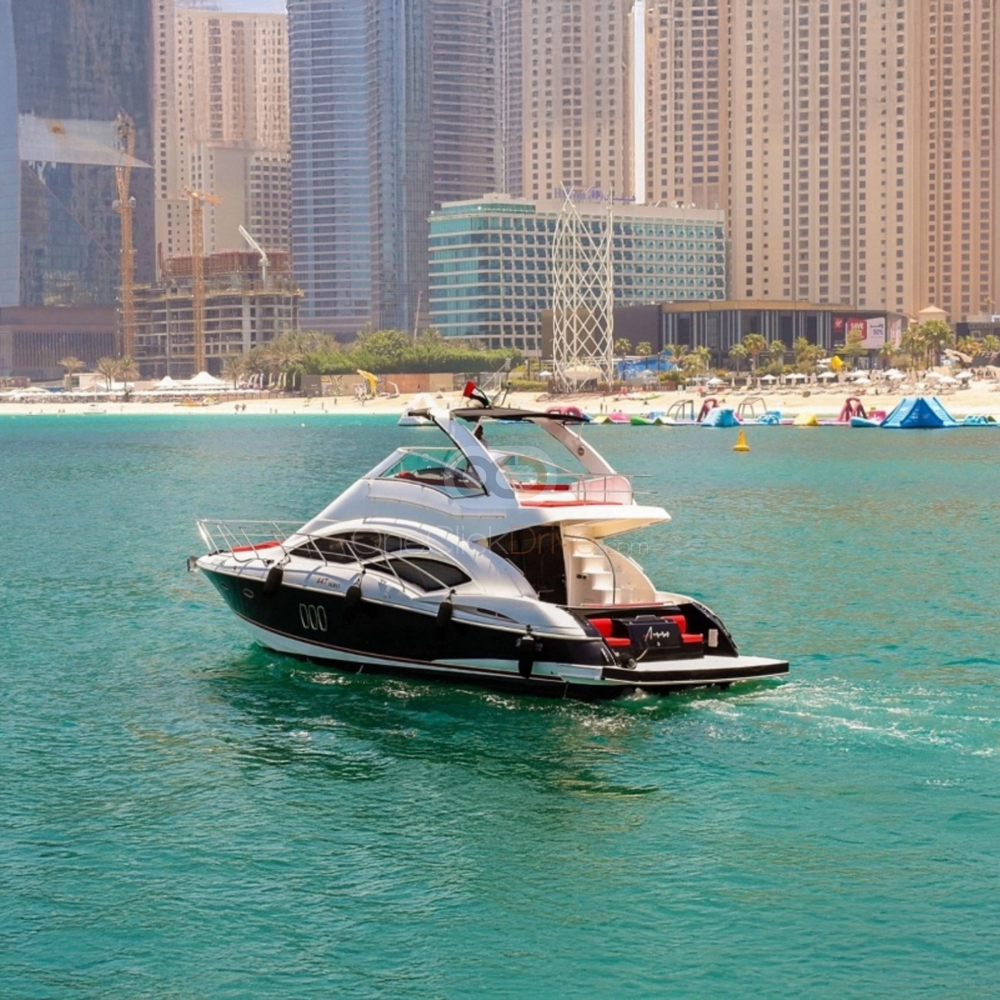 El yate está diseñado para brindar una experiencia cómoda y lujosa para usted y sus invitados mientras disfruta de la belleza del paisaje circundante y explora atracciones increíbles como el altísimo Burj Khalifa, el hotel Atlantis y la Palm Jumeirah artificial. Con una longitud de 47 pies, este yate puede acomodar cómodamente hasta 12 huéspedes. El barco también cuenta con un interior elegantemente decorado, con asientos lujosos y amplio espacio para moverse y socializar.