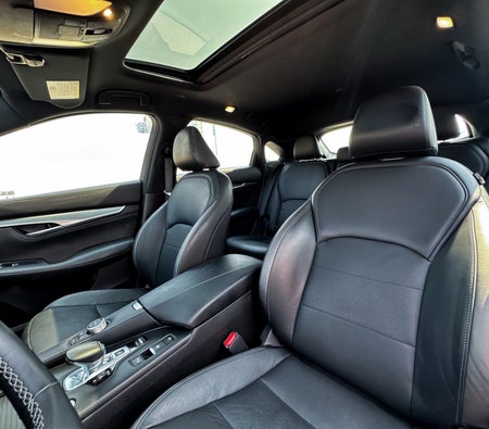 Louer et conduire Le présent Infiniti QX55 2023-Modèle en Dubai, EAU  pour USD 84/jour & USD 1036/mois. Le coût de la location comprend Base complète assurance et une limite de kilométrage standard de kilométrage: 450 km/jour (USD 0.28 par supplément km applicable). Dépôt de garantie de USD 544 est nécessaire. Contact Location de voiture Dollar directement pour les réservations et les demandes de renseignements...