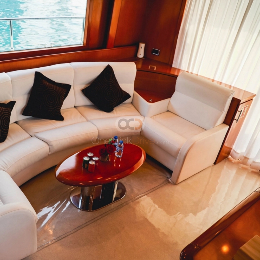 Le Yacht est conçu pour vous offrir, à vous et à vos invités, une expérience confortable et luxueuse, tout en admirant la beauté du paysage environnant et en découvrant des attractions étonnantes telles que le Burj Khalifa, l'hôtel Atlantis et le Palm Jumeirah, construit par l'homme. Avec une longueur de 64 pieds, ce yacht peut accueillir confortablement jusqu'à 25 invités. Le bateau est également doté d'un intérieur élégant, avec des sièges en peluche et beaucoup d'espace pour se déplacer et socialiser.