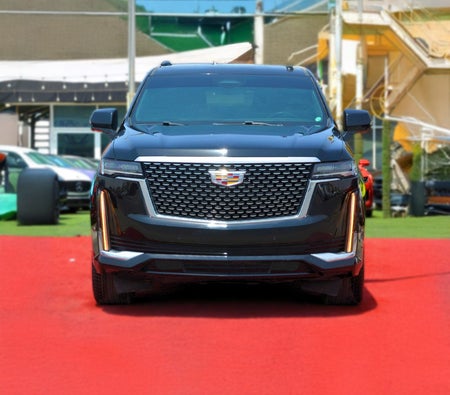 Cadillac Escalade 2022 Noleggio a Dubai: SUV nero, 7 posti, prestazioni potenti, sedili in pelle premium, tettuccio panoramico, ampio display touchscreen
