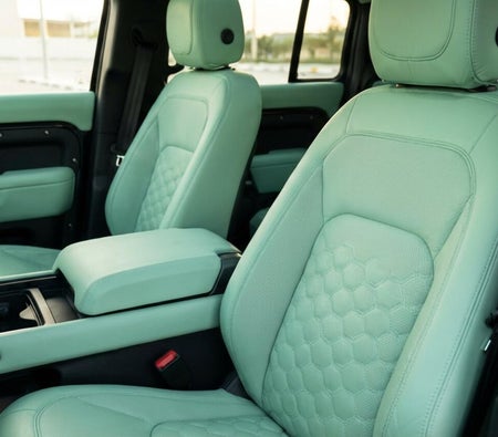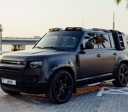 Huur en rijd Dit Land Rover Defender First Edition 2023-Model in Dubai, VAE  voor USD 204/dag & USD 4080/maand.Huurprijs is inclusief Basis uitgebreid verzekering en standaard kilometerlimiet van kilometerstand: 250 km/dag (USD 2.72 per extra km van toepassing). Borg van USD 680 Is benodigd. Contact Taite Luxe Autoverhuur direct voor boekingen en vragen...