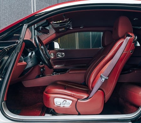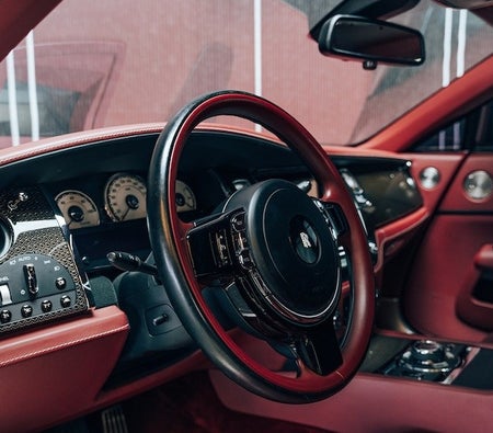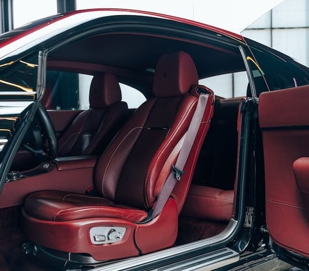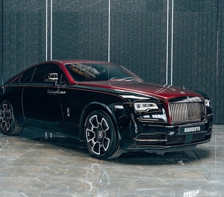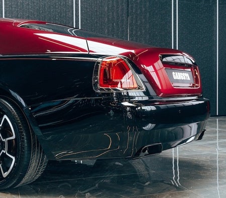de Rolls Royce Wraith Black Badge Luxe auto wordt vermeld door Gangsta World Luxury Automobiles Trading LLC FZ. Dit 2 deur- Luxe auto past bij 4 passagiers en 2 middelgrote zak(ken).