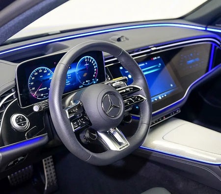Inside, the cabin is crafted with premium materials and cutting-edge technology, highlighted by the passenger display that allows the front passenger to enjoy media, navigation, and AMG functions independently. The MBUX digital interface, ambient lighting, and comfort-focused seating create a refined and immersive environment.