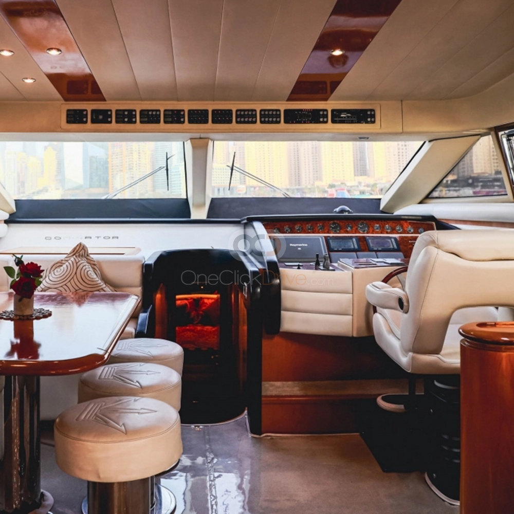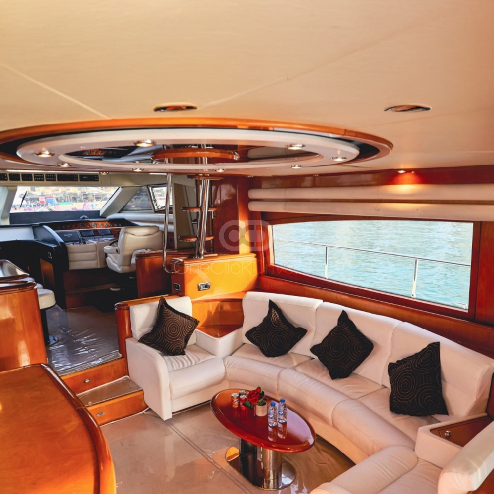 Yat çevredeki manzaranın güzelliğini seyrederken ve yüksek Burj Khalifa, Atlantis Hotel ve insan yapımı Palm Jumeirah gibi muhteşem turistik mekanları keşfederken siz ve misafirleriniz için konforlu ve lüks bir deneyim sunmak üzere tasarlanmıştır. Uzunluğu ile 64 ayaklar, bu yatta rahatça konaklayabilir 25 Misafirler. Tekne aynı zamanda rahat bir oturma alanı ve hareket etmek ve sosyalleşmek için geniş bir alana sahip, zarif bir şekilde döşenmiş bir iç mekana sahiptir.