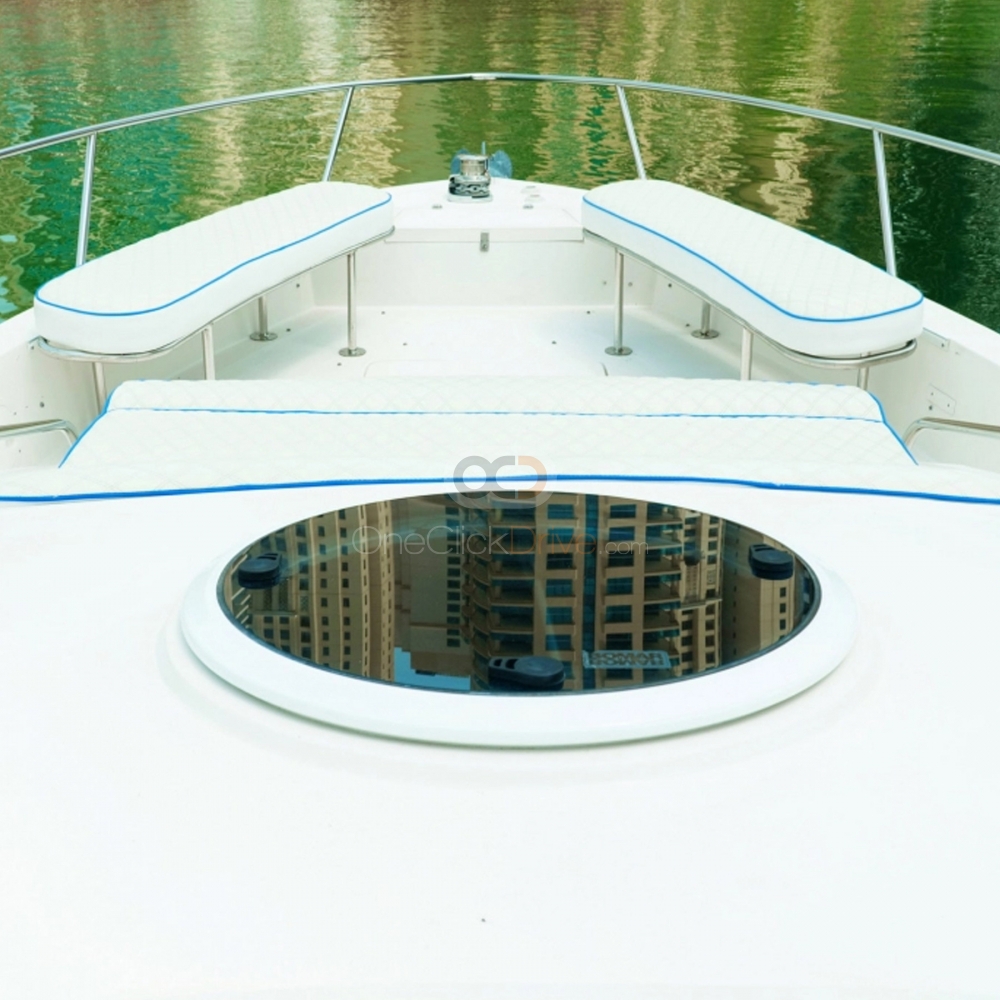 The Yacht is designed to provide a comfortable and luxurious experience for you and your guests while taking in the beauty of the surrounding scenery and exploring amazing attractions such as the sky-high Burj Khalifa, Atlantis Hotel, and man made Palm Jumeirah. With a length of 36 feet, this yacht can comfortably accommodate up to 10 guests. The boat also boasts an elegantly appointed interior, with plush seating and ample room to move around and socialize.
