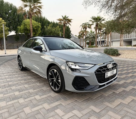 奥迪 A3 2024 迪拜租赁:银色轿车,4 座,紧凑型豪华车,动力强劲